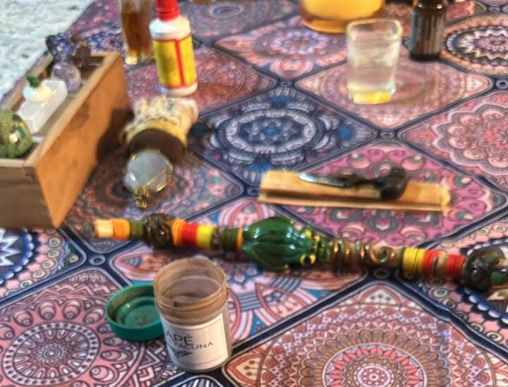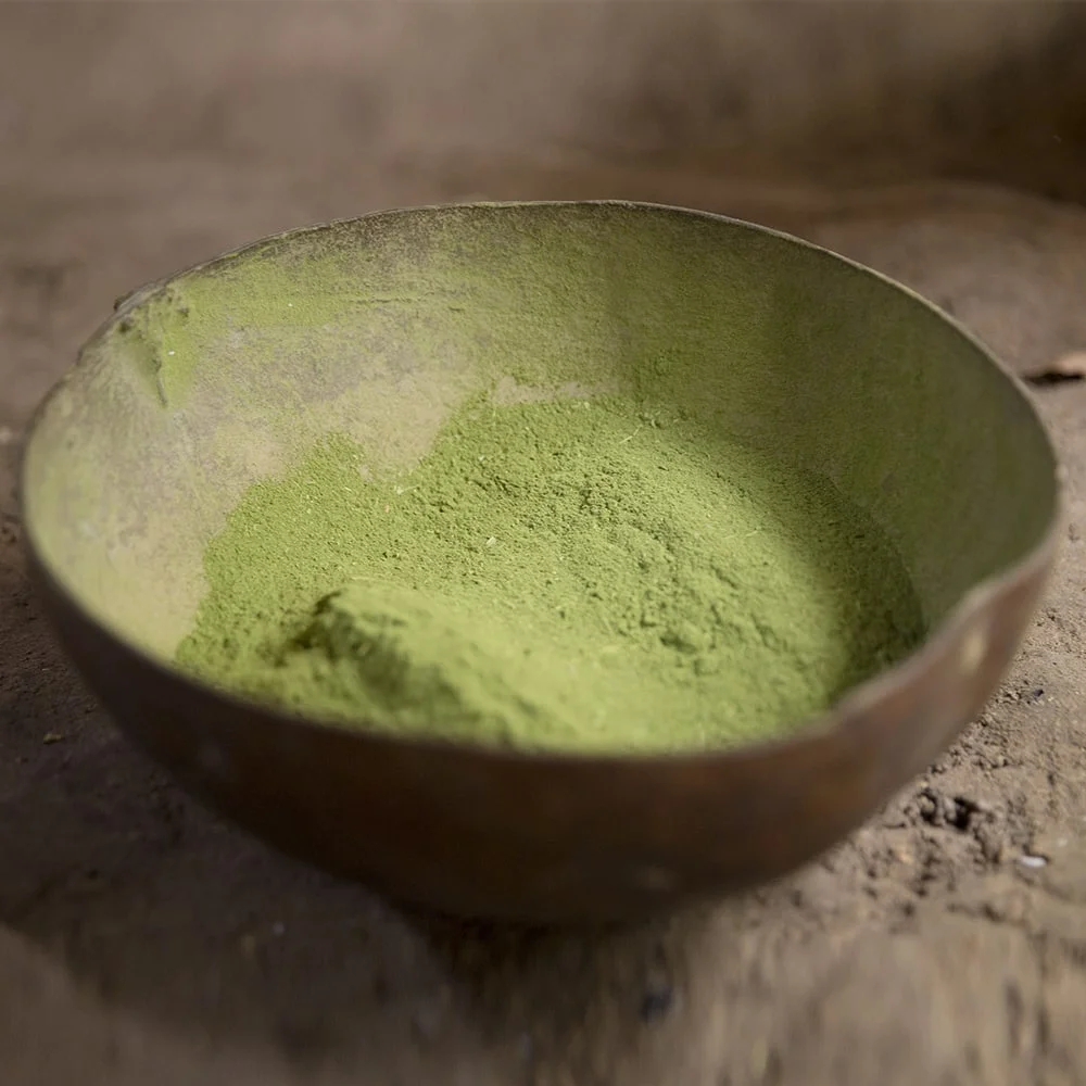 Polvo sagrado soplado por la nariz que limpia, enfoca y alinea cuerpo y mente.